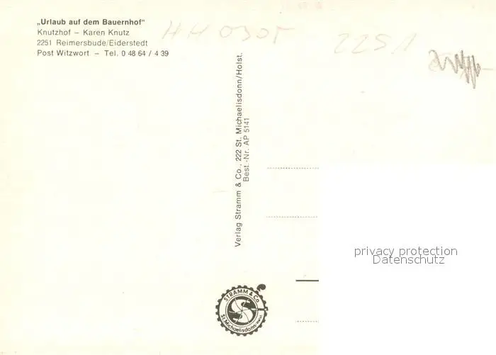 Reimersbude_Witzwort Urlaub auf dem Bauernhof Knutzhof Garten Reimersbude Witzwort postalisch nicht gelaufen nach 1965 Erhaltung siehe scans [FriedD77] Frierer