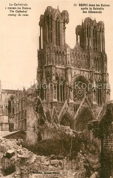 Reims_Champagne_Ardenne La Cathedrale dans les Ruines apres Retraite des Allemands Reims_Champagne_Ardenne