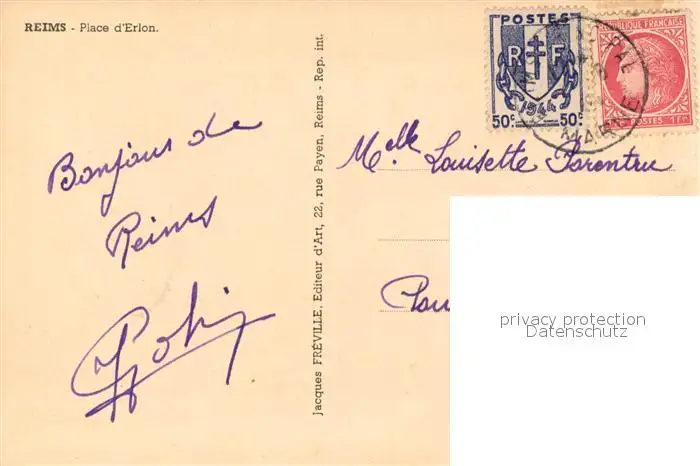 Reims_Champagne_Ardenne Place d'Erlon Reims_Champagne_Ardenne postalisch gelaufen 1921-1965 Erhaltung siehe scans [WerneD78] WernPID7