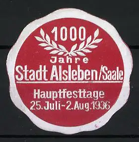 Reklamemarke Alsleben, 1000 Jahre Stadt Alsleben / Saale, Lorbeerkranz, 1936