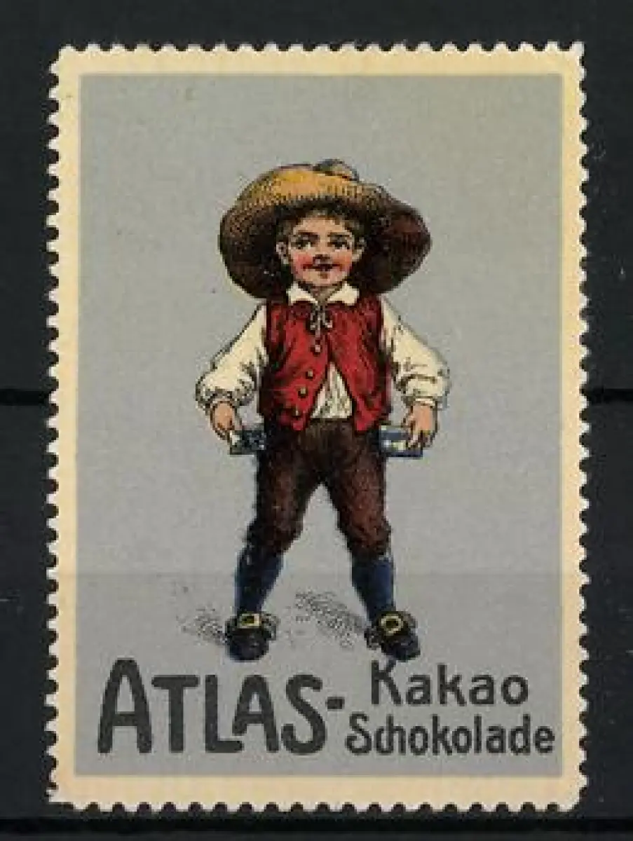 Reklamemarke Atlas-Kakao Schokolade, Junge mit Hut