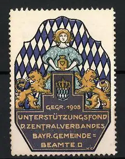 Reklamemarke Bayern, Unterstützungsfond Zentralverband Bayr. Gemeinde-Beamte 1908, bayerisches Wappen