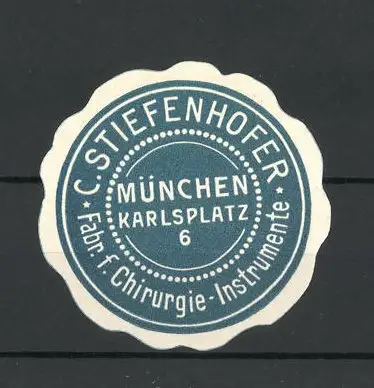 Reklamemarke Fabrik f. Chirurgie-Instrumente C. Stiefenhofer, Karlsplatz, München