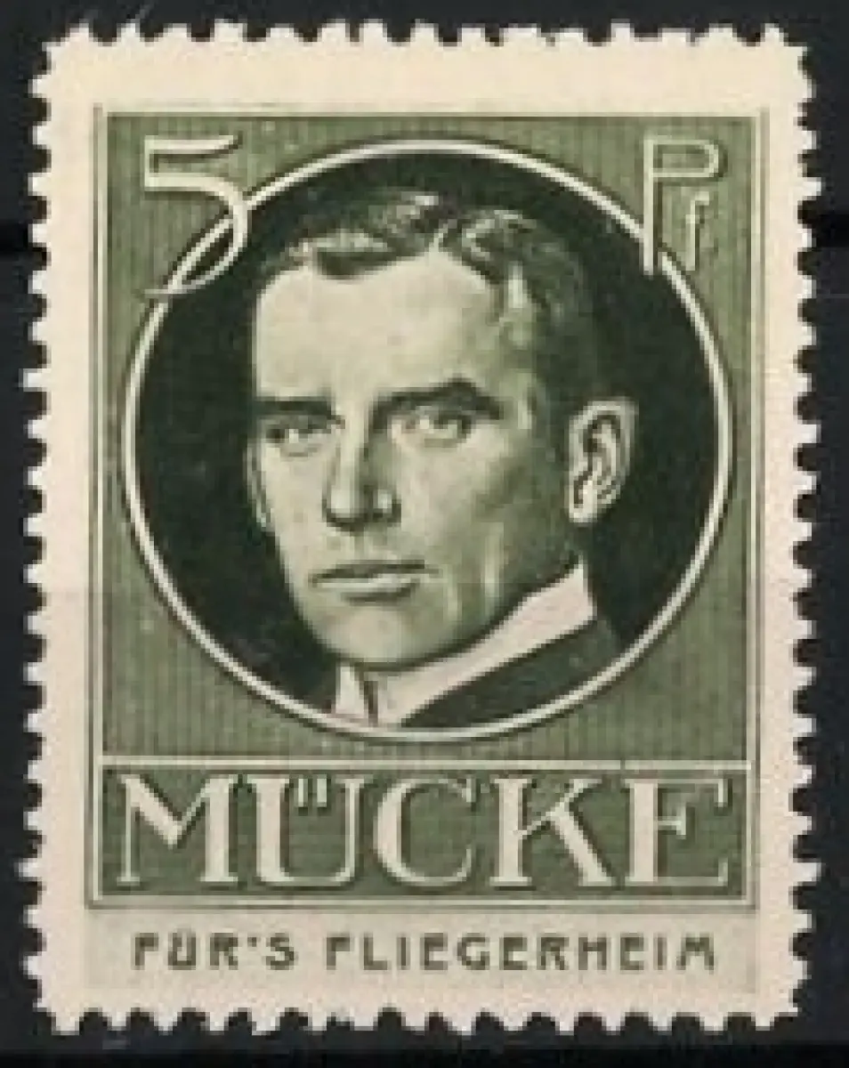 Reklamemarke Für's Fliegerheim, Portrait Kapitänleutnant der S.M.S. Emden Hellmuth von Mücke