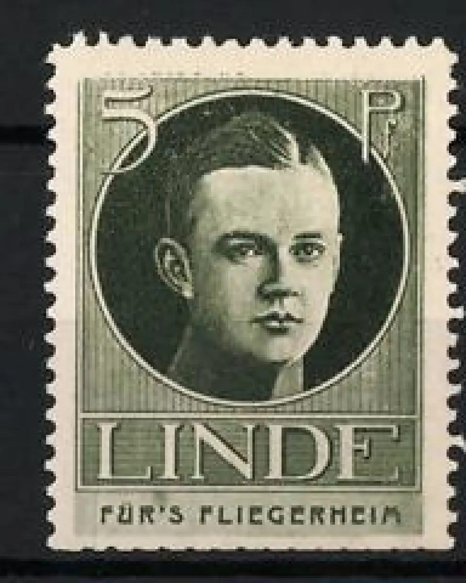 Reklamemarke Für's Fliegerheim, Portrait Leutant Otto von der Linde, Träger des Pour le Merite