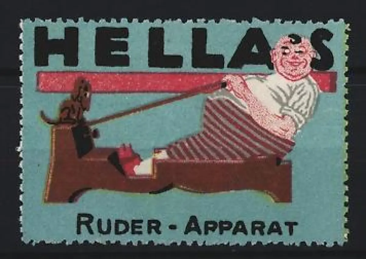 Reklamemarke Hellas, Ruder-Apparat, Rudergerät mit Hund
