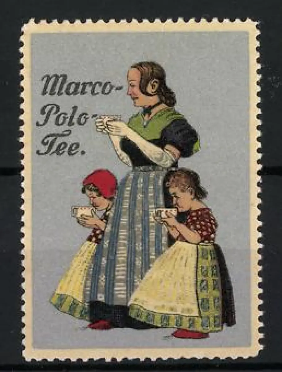Reklamemarke Marco-Polo-Tee, Trinkende Familie