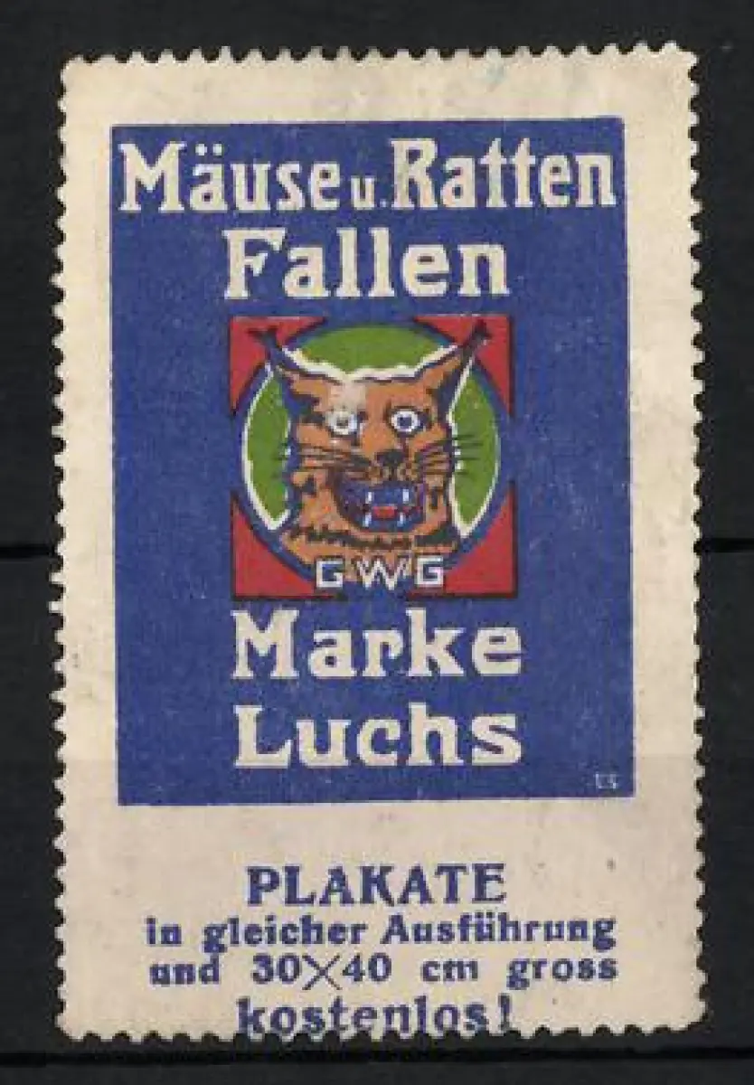 Reklamemarke Marke Luchs, Mäuse- und Rattenfallen, Luchs-Logo