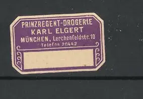 Reklamemarke Prinzregent-Drogerie Karl Elgert, Lerchenfeldstr. 20, München