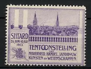 Reklamemarke Sittard, Tentoonstelling 1913, Stadtansicht mit Türmen