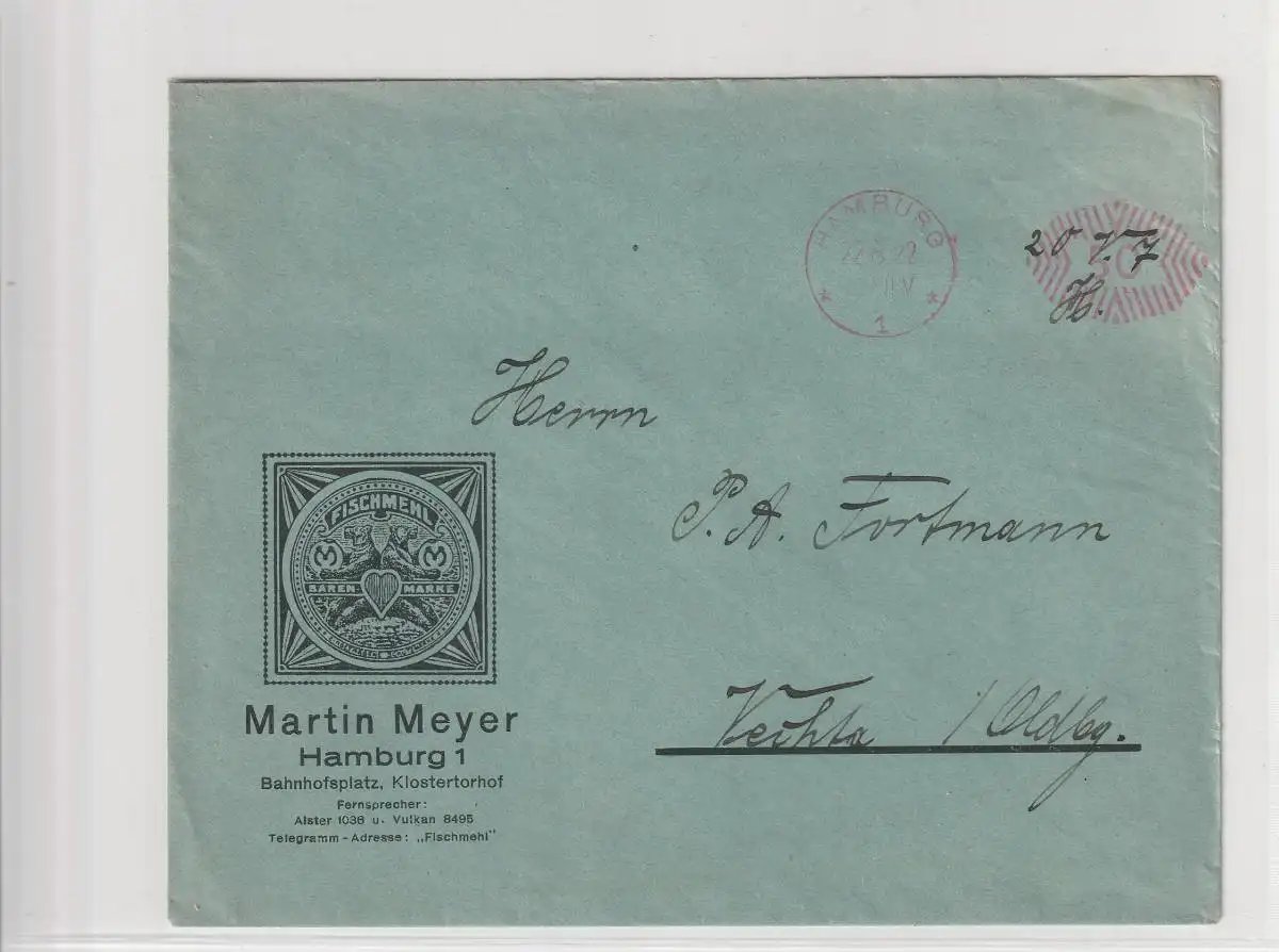 Reklameumschlag Fischmehl, Fa. Meyer, Hamburg