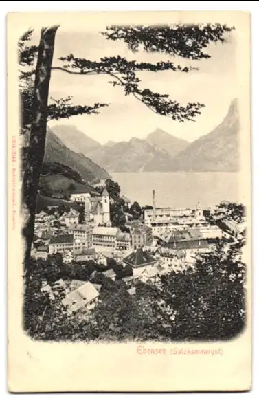 Relief-AK Ebensee /Salzkammergut, Ortsansicht mit Bergpanorama