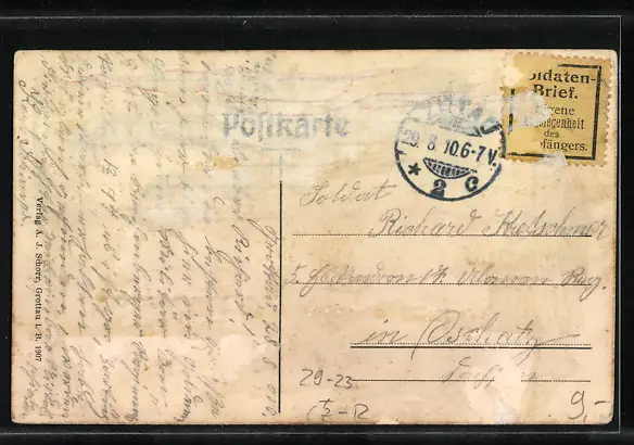 alte Ansichtskarte, gelaufen 1910, rückseitig Klebe- und Papierreste, guter Zustand