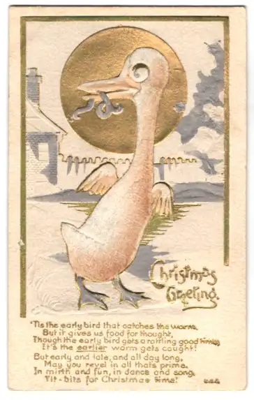 Relief-AK Hässliches Entlein mit Wurm im Schnabel