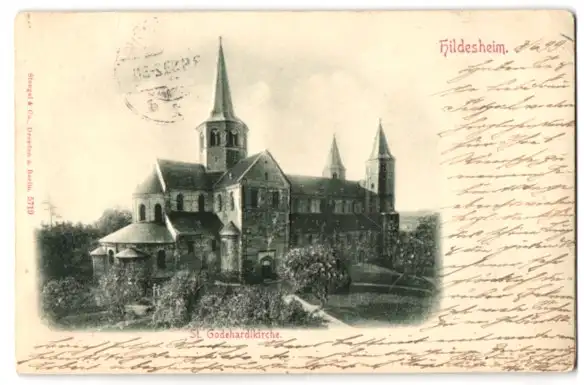 Relief-AK Hildesheim, Blick auf die St. Godehardkirche