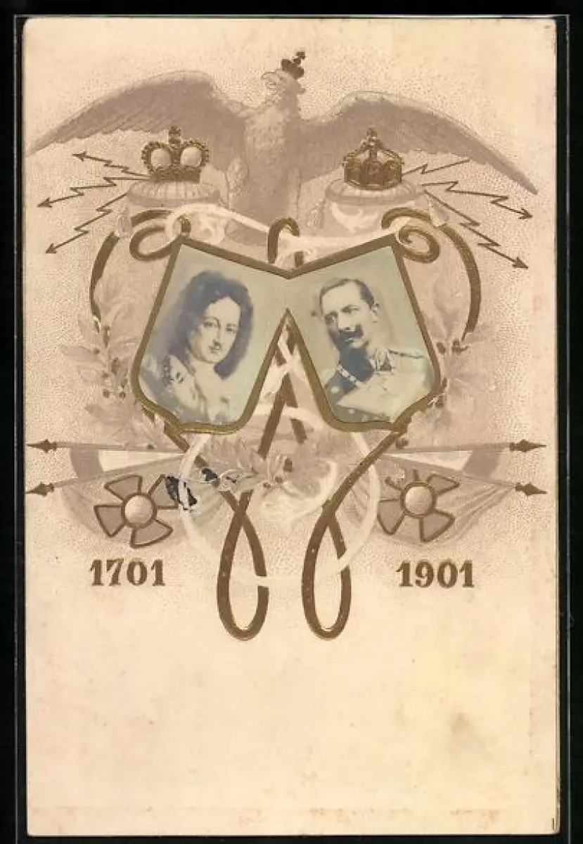 Relief-AK Kaiser Wilhelm von Preussen, 1701-1901, Adler mit Krone
