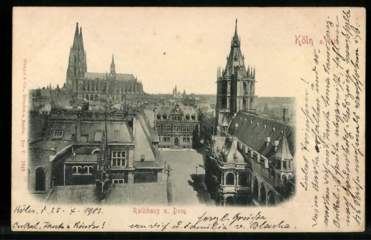 Relief-AK Köln a. Rh., Rathaus und Dom