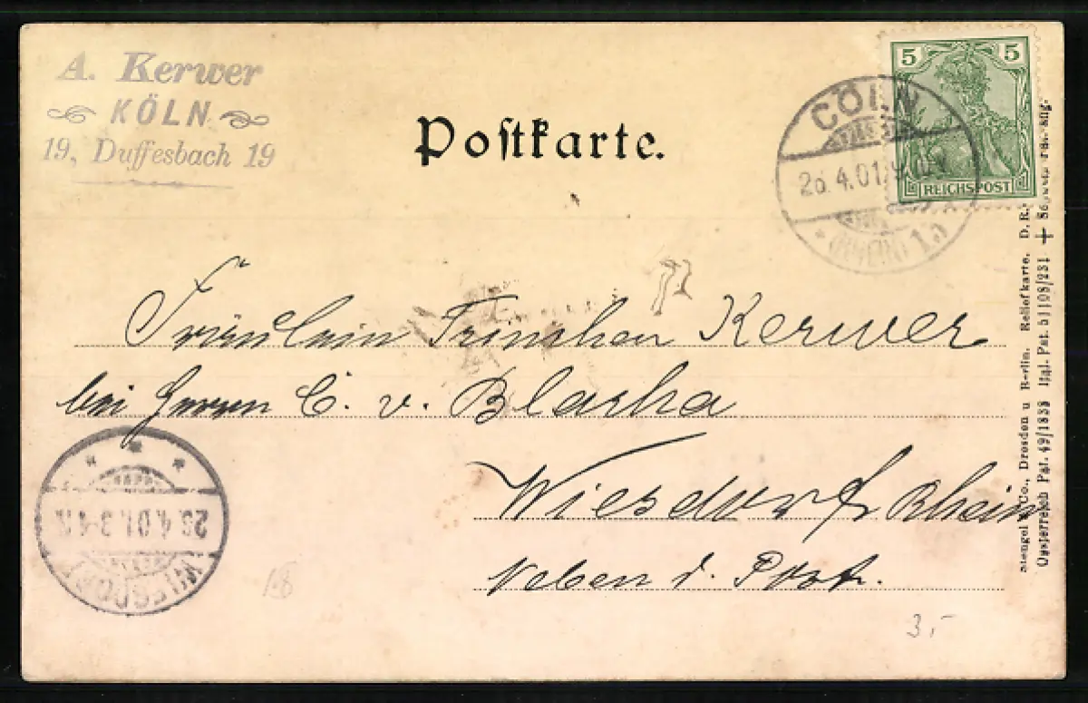 alte Ansichtskarte, gelaufen 1901, guter Zustand