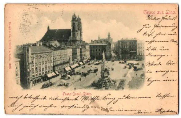 Relief-AK Linz, Strassenpartie am Franz-Josef-Platz