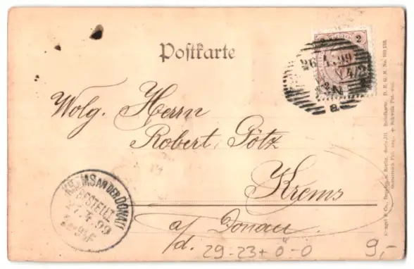 alte Ansichtskarte, gelaufen 1899, guter Zustand