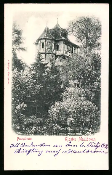Relief-AK Maulbronn, Faustthurm des Klosters