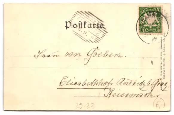 alte Ansichtskarte, gelaufen 1899, guter Zustand