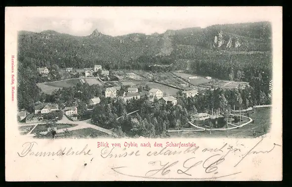 Relief-AK Oybin, Teilansicht mit Scharfenstein