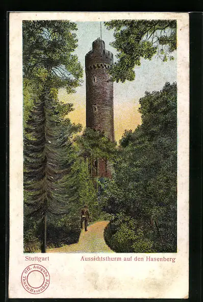 Relief-AK Stuttgart, Aussuchtsturm auf dem Hasenberg