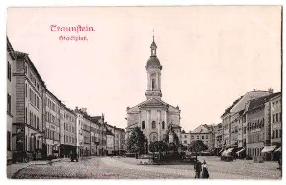 Relief-AK Traunstein, Geschäfte am Stadtplatz