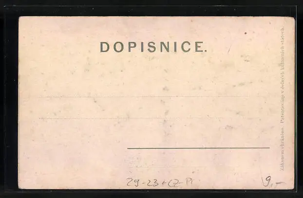 Personenbezogene Daten auf der Rückseite der Karte wurden durch blauen Textmarker unkenntlich gemacht. Die blauen Stellen sind auf die Vorderseite durchgeweicht und wirken sich negativ auf das Postkartenfoto aus