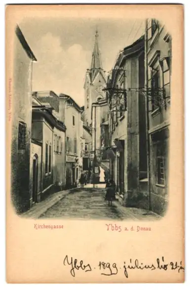 Relief-AK Ybbs a. d. Donau, Kirchengasse mit Blick auf den Kirchturm
