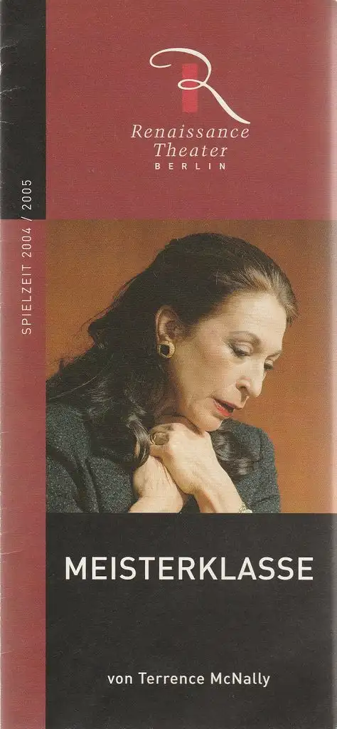 Renaissance Theater Berlin, Neue Theater Betriebs GmbH, Horst-H. Filohn, Gundula Reinig: Programmheft Terrence McNally MEISTERKLASSE Premiere 29. Oktober 2004.