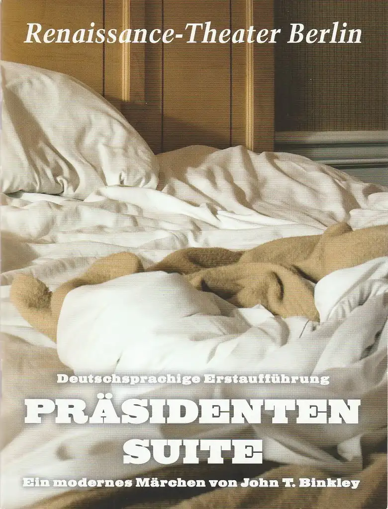 Renaissance-Theater Berlin, Neue Theater-Betriebs GmbH, Horst-H. Filohn, Gundula Reinig, Stephanie Wiegert: Programmheft John T. Binkley PRÄSIDENTEN SUITE Premiere 7. Oktober 2018.