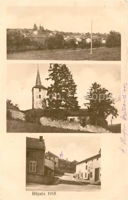 Repaix Ortspartien mit Kirche Repaix postalisch gelaufen 1915 Feldpost - Stempel Erhaltung siehe scans [LiesaD40] Feldpost - Stempel LiesID40