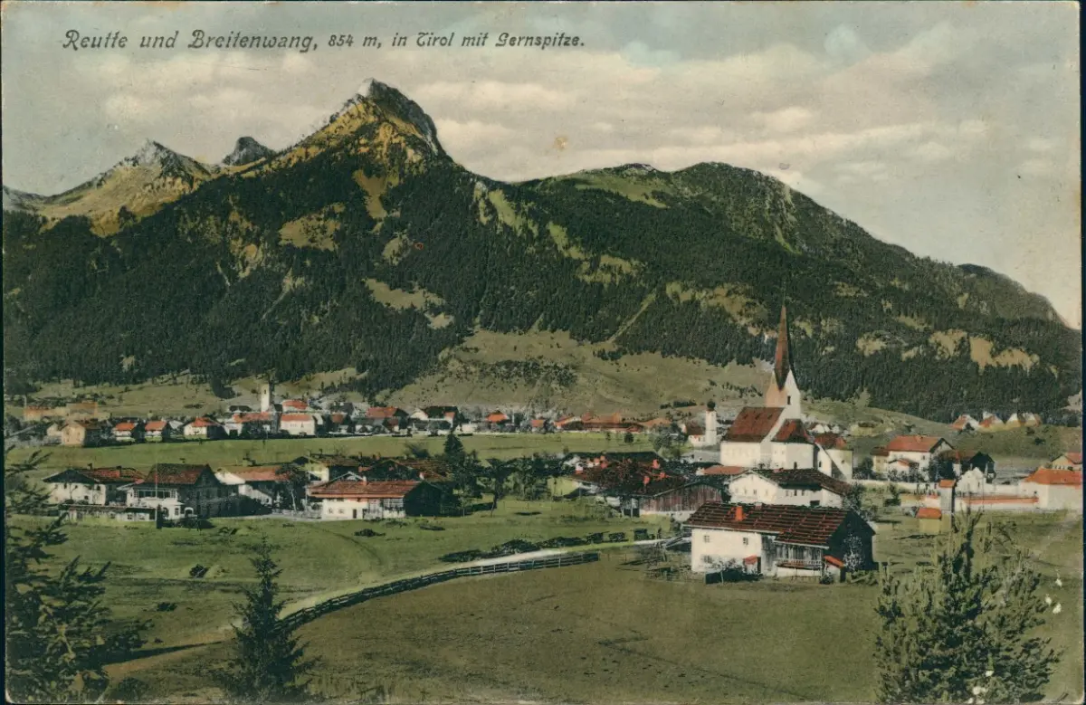 Reutte Panorama-Ansicht mit Breitenwang in Tirol mit Gernspitze 1910/1907
