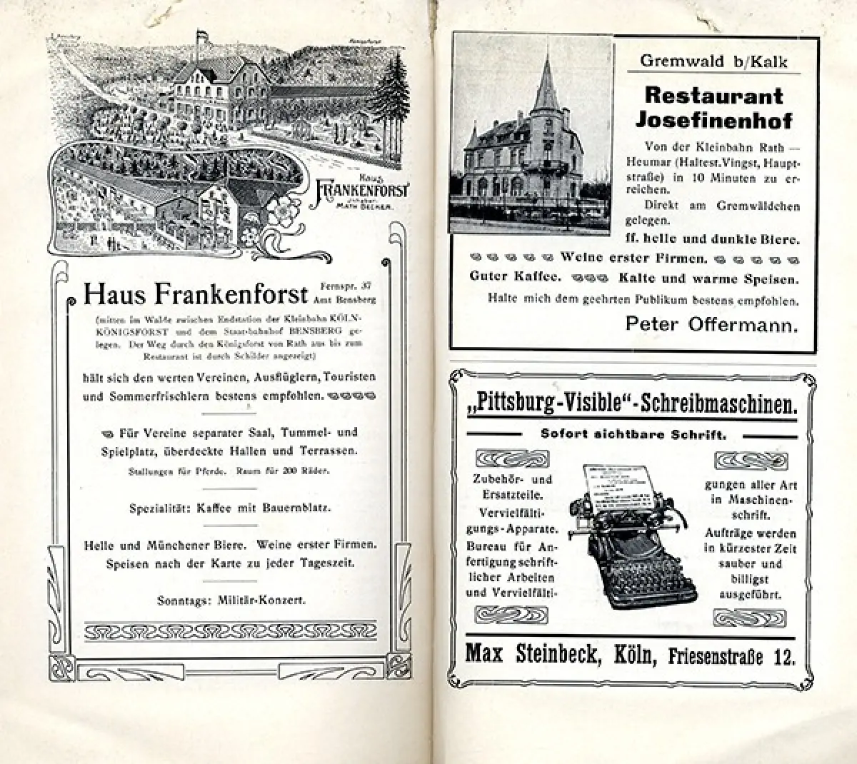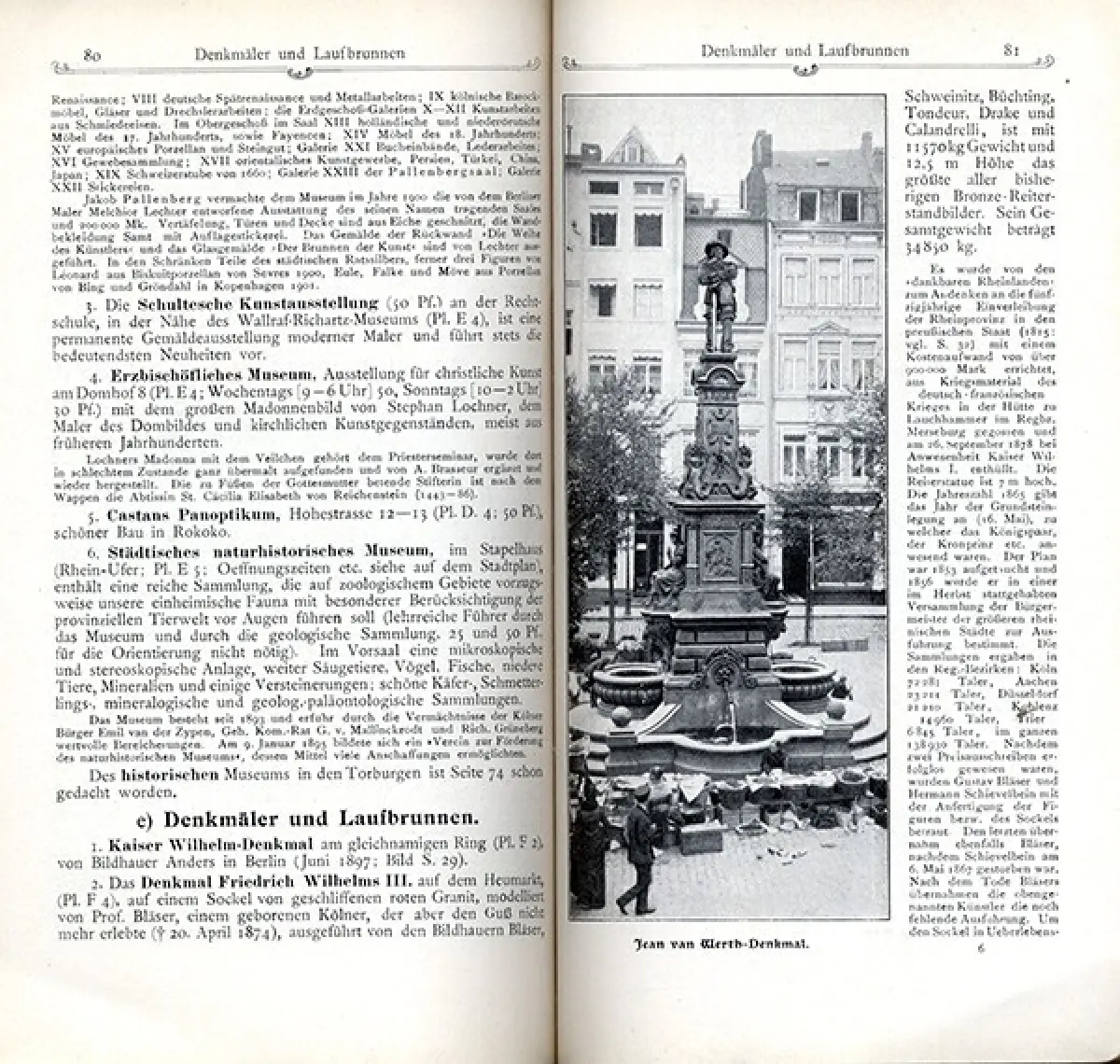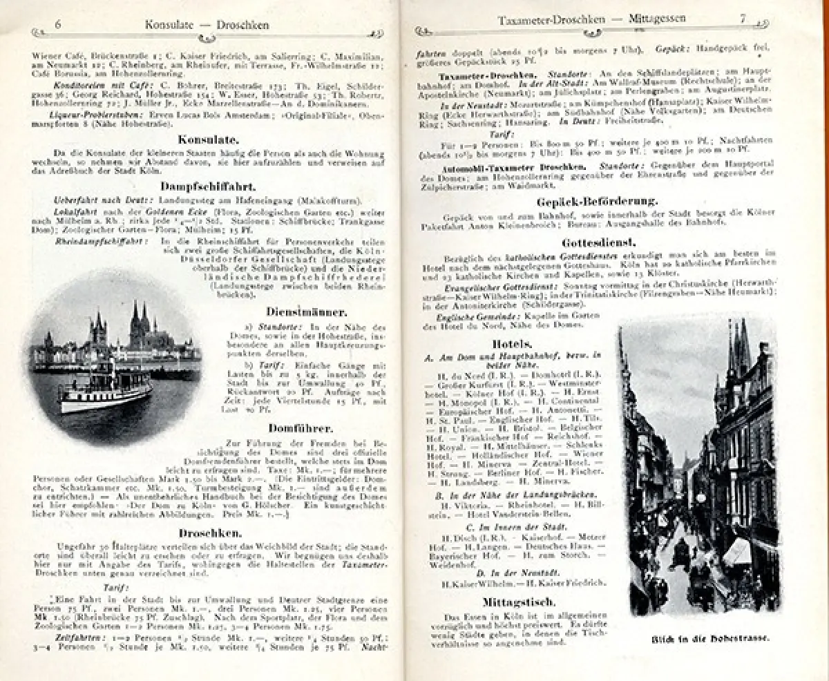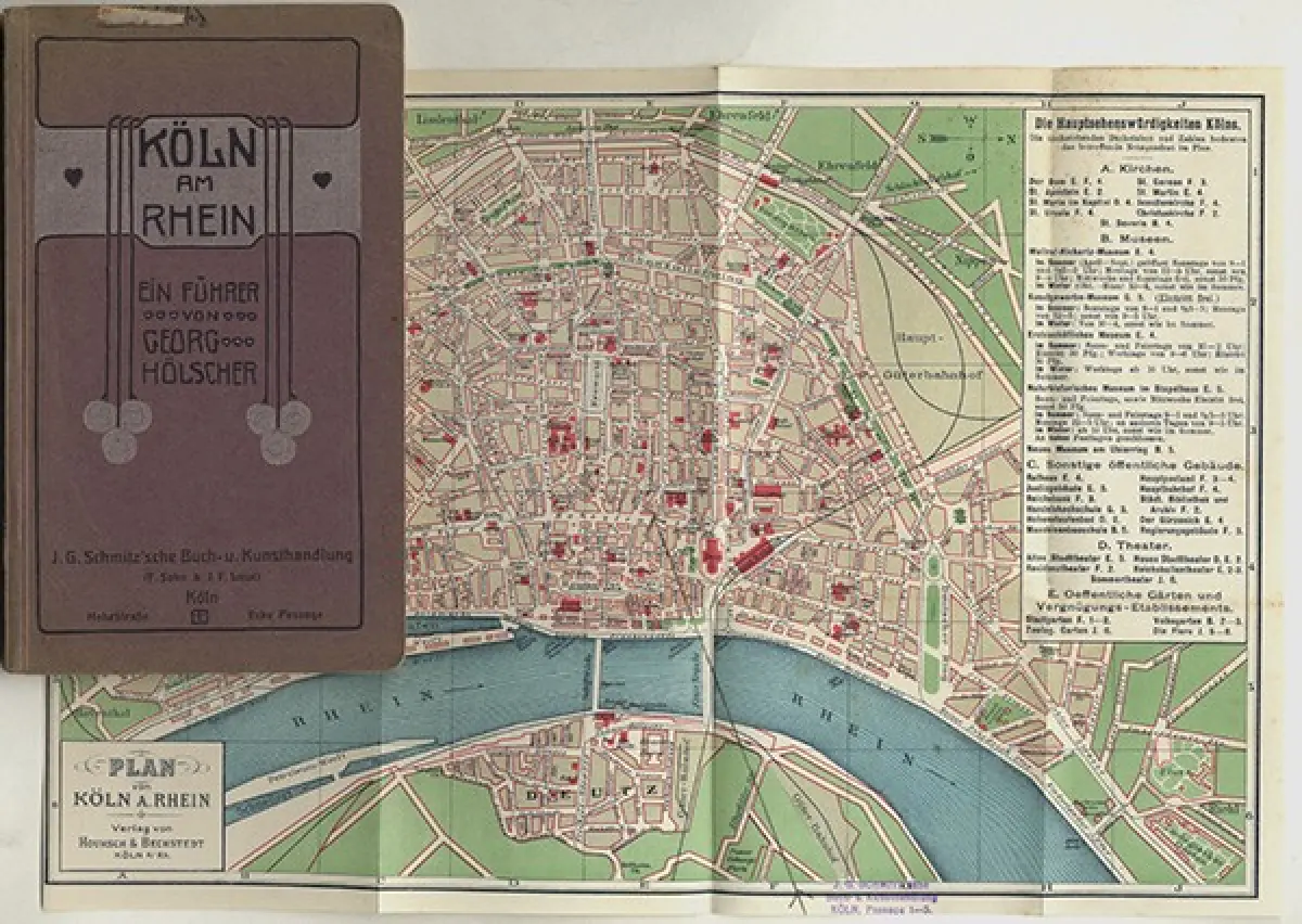 RHEIN WESTFALEN KÖLN ARCHITEKTUR UND STADTGESCHICHTE Stadt Köln am Rhein Buchausgabe mit Stadtplan für den Reise und Fremdenverkehr regionalgeschichtliche Buchausgabe von 1905 mit GESAMT 108 Seiten photographischen Abbildungen einem farbigen Stadtplan Kleingrafik einem Literaturverzeichnis einem Hotel und Gaststättenverzeichnis einer Übersicht der städtischen Behörden Bahnhof Straßenbahnlinien und Droschken Tarife Post und Banken. Einer historischen Chronik zur Geschichte der Stadt Beschreibung ihrer Bauwerke und Sehenswürdigkeitenhier besonders der Kölner Dom und die übrigen Kirchen Stadtbild Denkmäler Theater Museen und Sammlungen. Schulen und Universitäten. Hinweise für Wanderungen und Ausflüge in die Umgebung. Rhein Dampfschiffahrt außerdem Anzeigen und Inserate regionale Hotel Gaststätten Firmen und Geschäftswerbung. \nGuter Zustand Format 20cm x 12cm. Die ausgewählten Bild Beispiele haben eine unterschiedliche Auflösung was die Wiedergabe durch den Scan beeinträchtigen kann. Bücher Papier und Dokumente deutscher Zeitgeschichte 1800-1960 Ankauf und Verkauf Besuchen Sie unser Ladengeschäft in Darmstadt Antiquariat Stefan Jähnig Reiseführer Orts und Landeskunde Landkarten Regionalgeschichte Wirtschaft Industrie und Technik Landwirtschaft und Gartenbau Geschichte Historika Kolonien und Seefahrt Weltkrieg und Militaria Presse Zeitungen und Zeitschriften Buchkunst Exlibri Literatur und Kunstgeschichte Mode Design Werbeschriften Kataloge und Prospekte Firmenrechnung Dokumente Urkunden Oblaten Glanzbilder Reklamemarken und Vignetten Postkarten Ansichtskarten historische Photographie Sammelbilder moderne Literatur und Gegenwart Romane Erzählungen Publizistik deutsche und internationale Autoren VERSANDKOSTEN Die Versandkosten richten sich nach den aktuellen Tarifen der Deutschen Post AG. Für ihre Anfragen und Wünsche habe ich ein offenes Ohr! Weitere Angebote finden Sie in meinem Ebay Shop Nachlass-Bearbeitung Ankauf von Büchern und Sammlungen