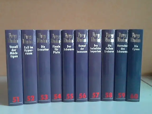 Vasall der Mächtigen + Exil an Hyperraum + Die Urmutter + Finale für Pluto + Der Schwarm + Kampf der Immunen + Das heimliche Imperium + Die Gelben Eroberer + Herrscher des Schwarms + Die Cynos 10 Bände: Band 51 bis 60