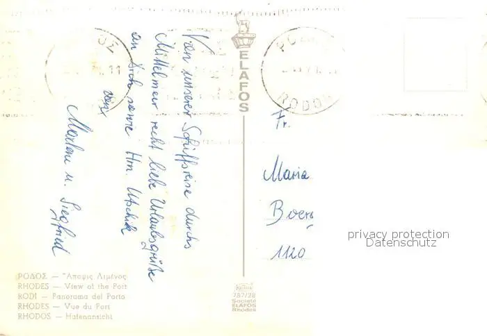 Rhodos_Rhodes_aegaeis Hafenansicht Rhodos_Rhodes_aegaeis postalisch gelaufen nach 1965 Erhaltung siehe scans [WerneD78] WernPID7