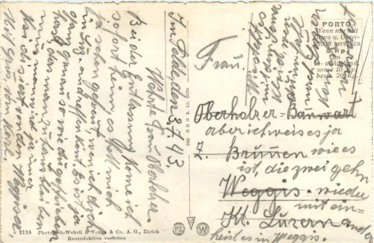 Danke. Alles Bestens. Können Sie mir allenfalls mitteilen, aus welchem Jahr die Postkarte stammt? Besten Dank.