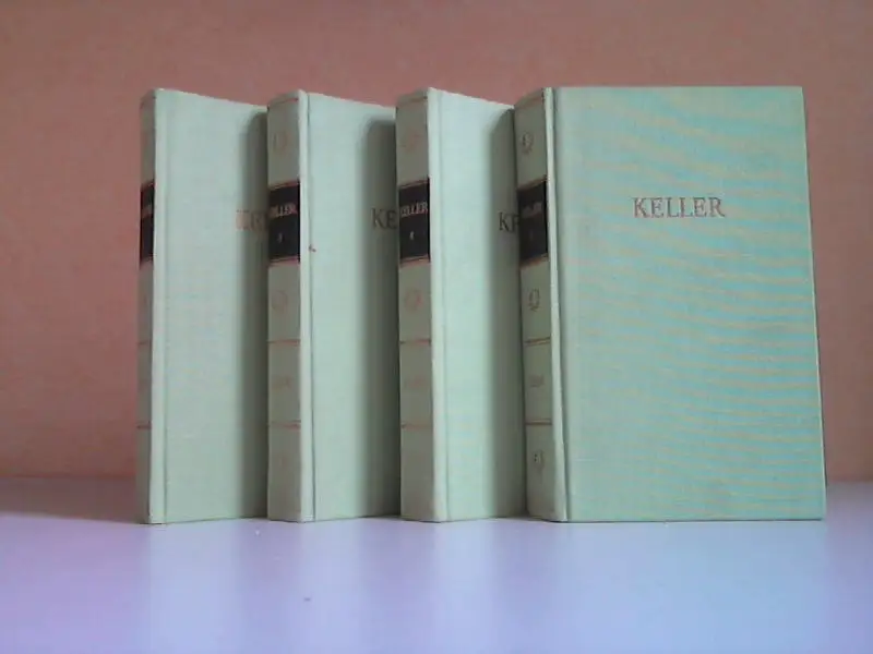 Kellers Werke 4 Bände; Schulbuch; Sinngedicht; Aufsätze; Grüne Heinrich; Leute von Selweyda; Kleider machen Leute; Schmied seines Glücks; Missbrauchten Liebesbriefe; Dietegen; Verlorene Lachen; Gedichte