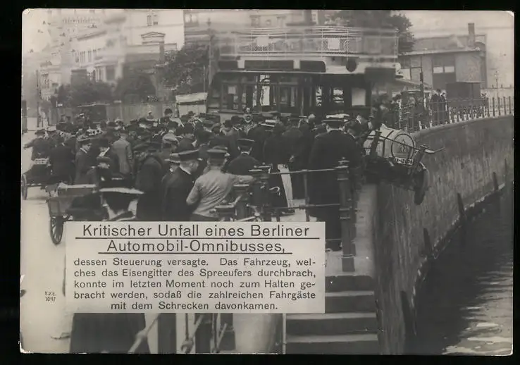 Riesen-AK Berlin, Unfall eines Automobil-Omnibusses an der Spree