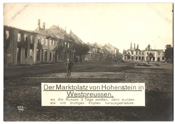 Riesen-AK Hohenstein i. Westpreussen, der zerstörte Marktplatz mit Häuserruinen