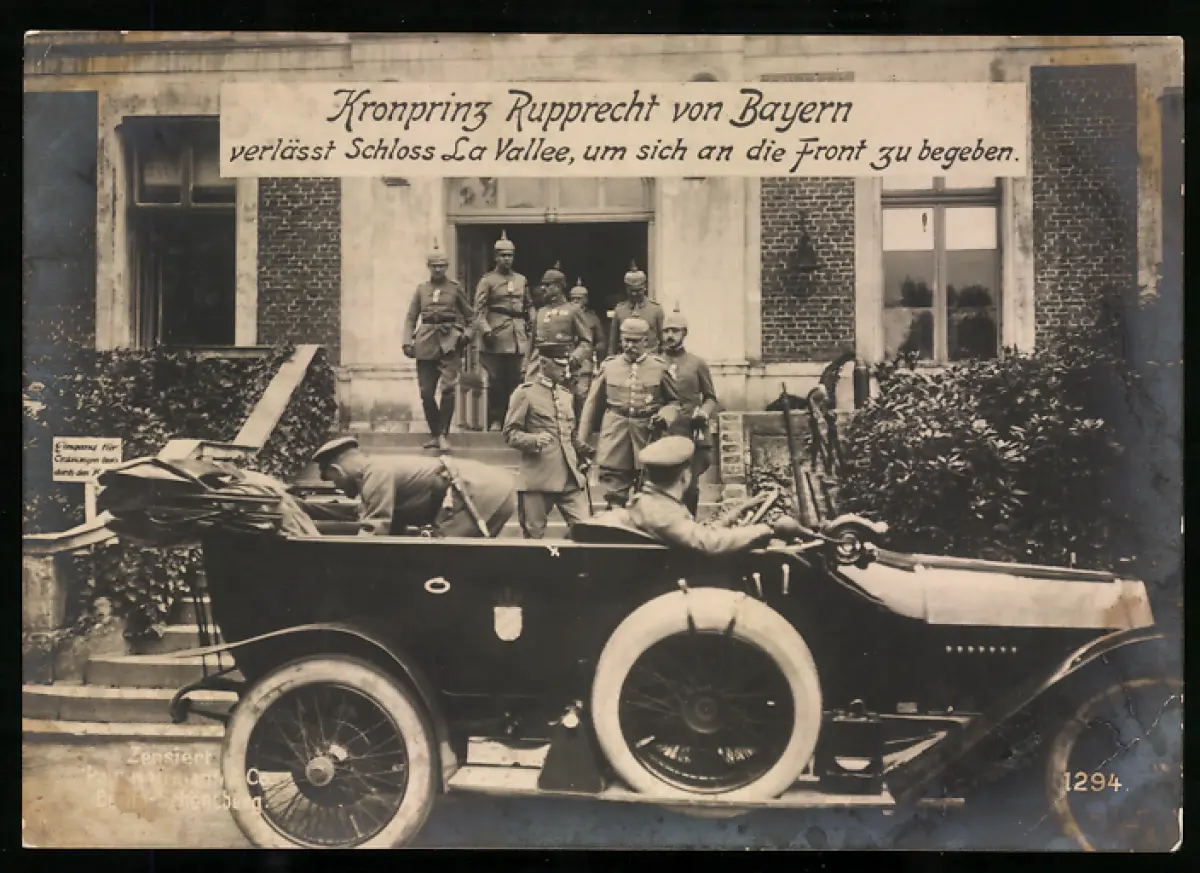 Riesen-AK Kronprinz Rupprecht von Bayern in Uniform verlässt Schloss La Vallee auf dem Weg zur Front