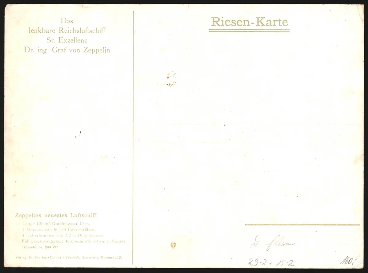 Riesen-AK München, Das lenkbare Reichsluftschiff von Dr. ing. Graf von Zeppelin bei der Landung