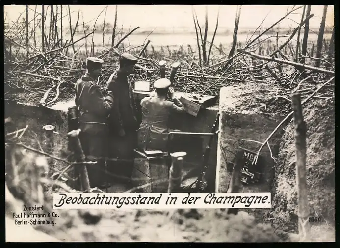 Riesen-AK Soldaten in Uniform mit Scherenfernrohr im Beobachtungsstand in der Champagne