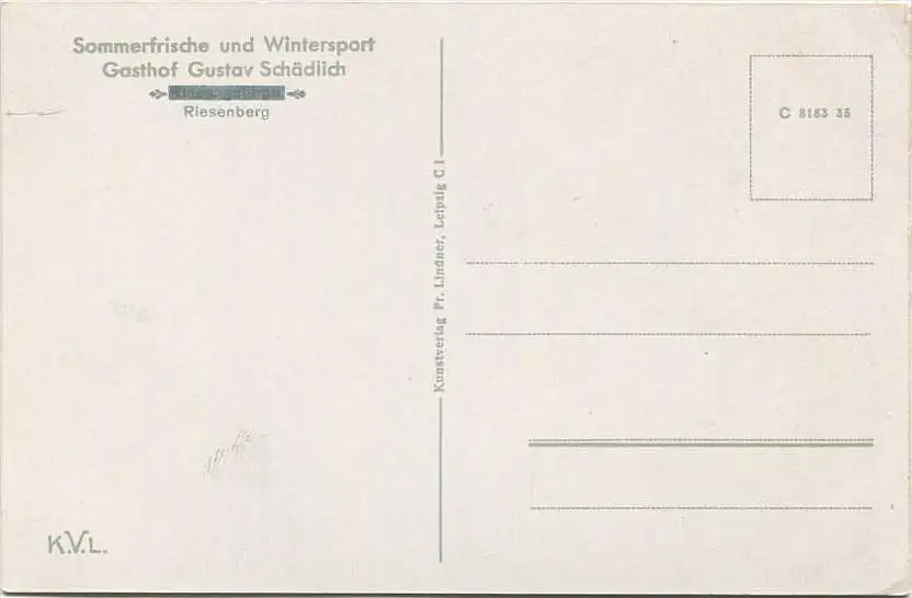 Riesengebirge - Riesenberg - Sommerfrische und Wintersport Gasthof Gustav Schädlich - Verlag Fr. Lindner Leipzig