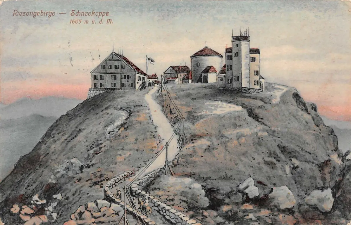Riesengebirge Schneekoppe 1605 m ü. d. M. Schneekoppenwirt AK 1913