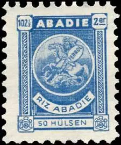 Serie: Hülsen Riz Abadie Nr. 102 und 103, Größe/Zustand: 3x3 , guter Zustand, Original alte Reklamemarke die seinerzeit für die Werbung benutzt wurde
