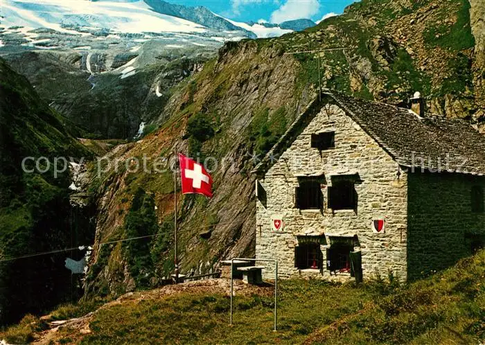 Robiei_Cavergno Capanna Cas di Robiei e ghiacciaio Basodino Berghuette Tessiner Alpen Robiei Cavergno
