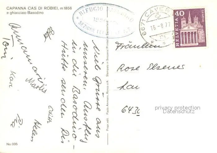 Robiei_Cavergno Capanna Cas di Robiei e ghiacciaio Basodino Berghuette Tessiner Alpen Robiei Cavergno postalisch gelaufen 1977 Erhaltung siehe scans [FriedD77] Frierer